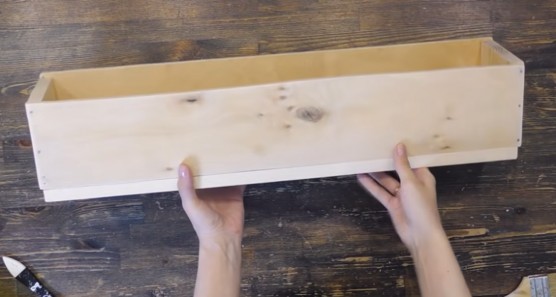 Для изготовления ножек для ящика идеально подойдут деревянные дверные ручки или любые понравившиеся вам ножки для мебели. Приклейте ножки ко дну ящика с помощью клея для дерева. Не дожидаясь высыхания клея, переверните ящик и с внутренней стороны прибейте ножки гвоздями.