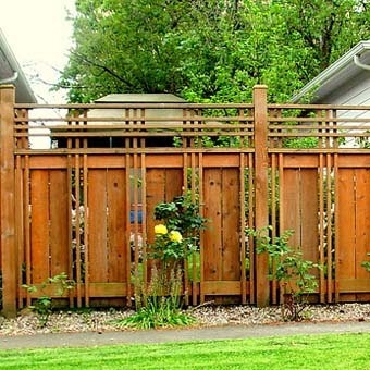 Деревянные заборы для дачи с плотными решетками защищают от случайного взгляда, не закрывая вам взгляд на улицу.