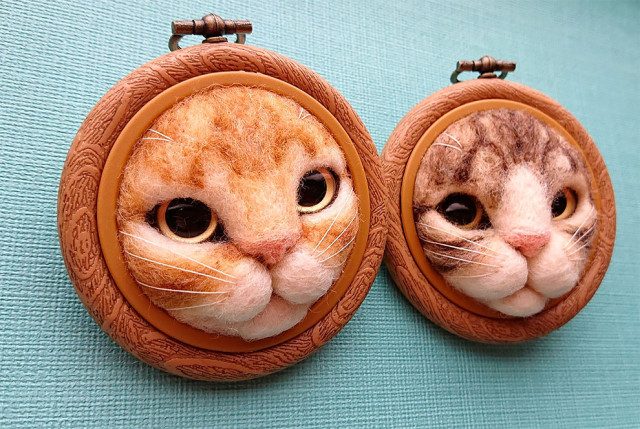 Нет, это не огромное количество кошек, пытающихся пролезть в крошечные рамки и застрявших в них своими мордочками — это замечательные реалистичные работы японской талантливой художницы и рукодельницы Сатоми Фудзиты (Fujita Satomi), прекрасно освоившей валяние шерсти (или, как его называют, «фелтинг»).