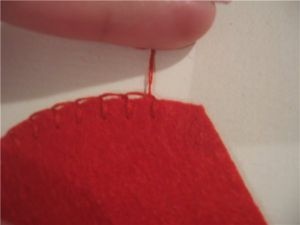 4.Начинаем обшивать наши лепестки простым обметочным швом. Не затягивайте нить слишком сильно. Петельки должны быть воздушными, чтобы цветок казался махровым.