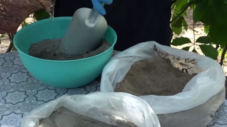 Замешайте цементный раствор из расчета 2 части песка и 1 часть цемента, разбавьте водой до нужной густоты.