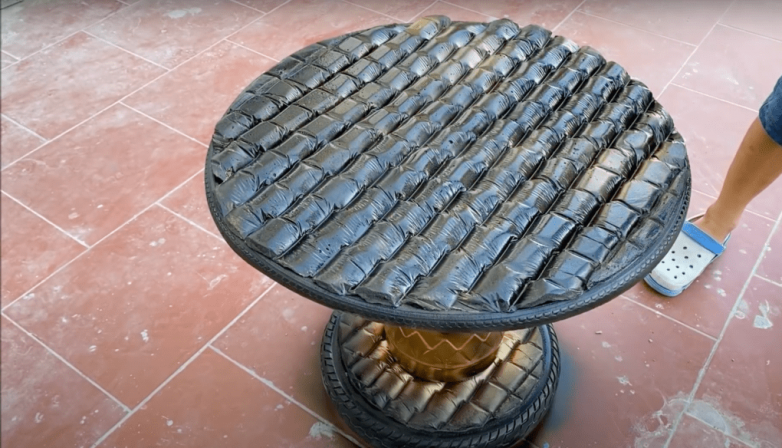 Только взгляните на этот необычный столик, который можно сделать своими руками буквально из хлама и цемента.