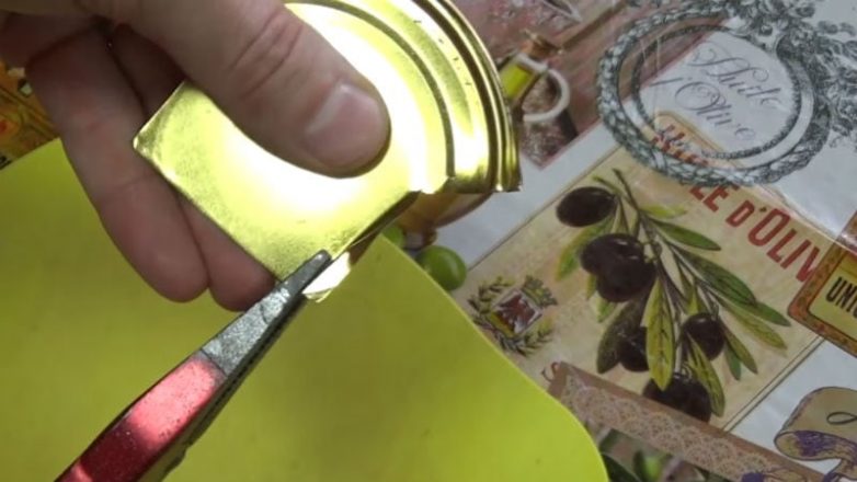 Для этого существует специальное приспособление, но необязательно его покупать — вполне можно обойтись своими силами. Для этого металлическую крышку для консервирования обрезаем по бокам и пассатижами загибаем, создавая волну.
