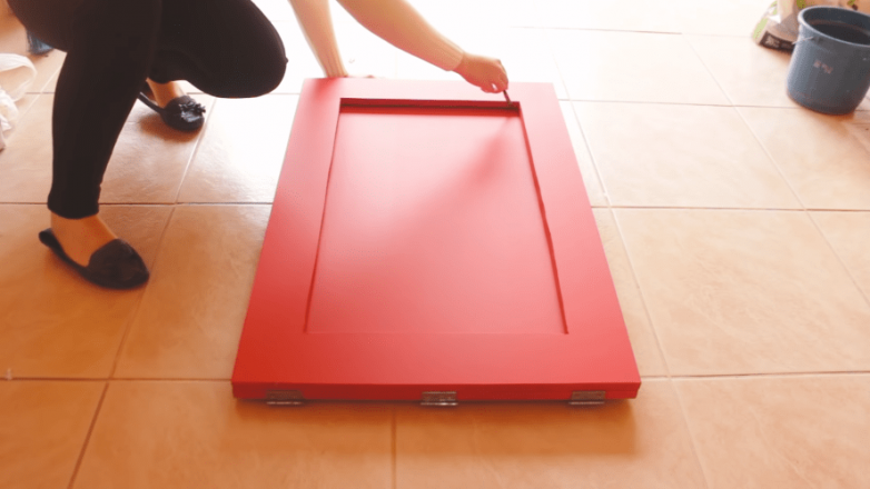 Дальше предстоит покраска деталей с последующей сборкой. Совместив листы между собой, соединяем их при помощи рояльных петель.