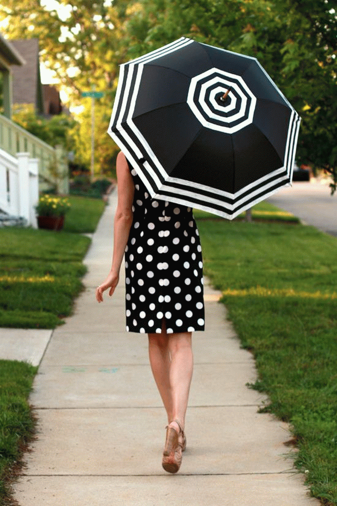 Прекрасная идея для оформления зонта — рисунок горошек. Делается такой дизайн очень просто, а выглядит великолепно.