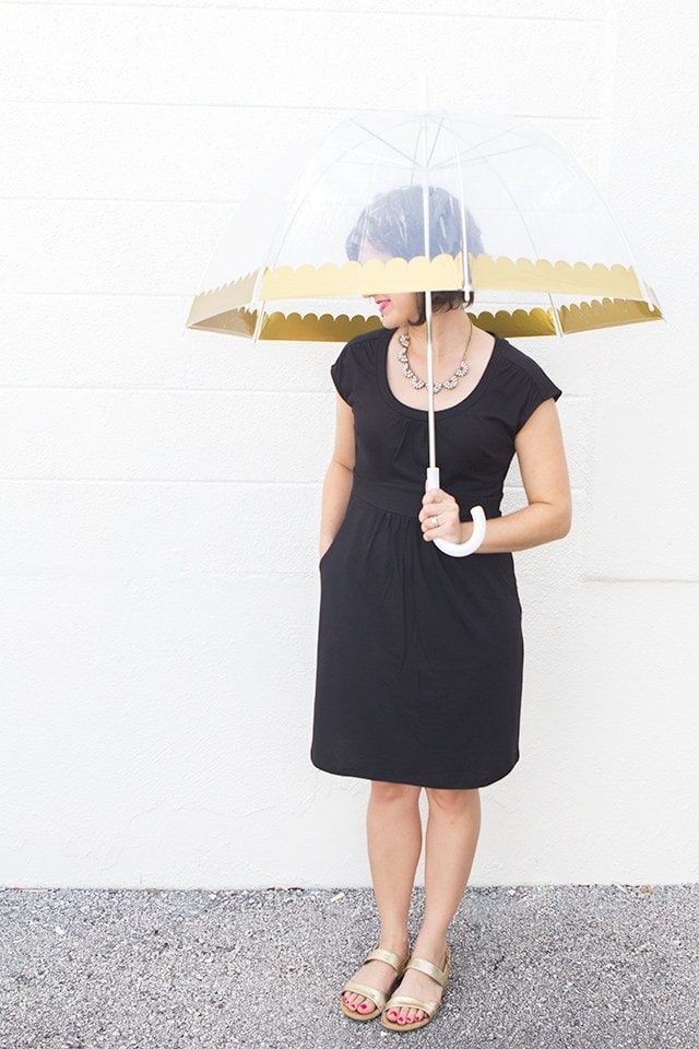 Просто опустите зонт в краску в полусложенном состоянии, чтобы получить стильный зонт-омбре.