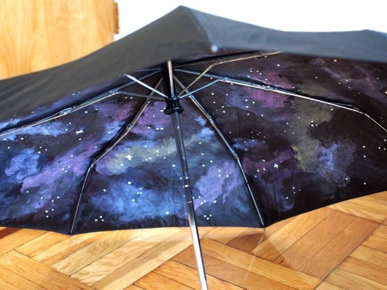 Хотите удивить всех. Просто превратите внутреннюю часть старого черного зонтика в галактику!