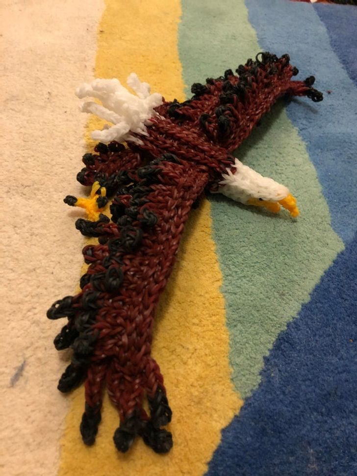 11. Эта фигурка орлана выполнена из канцелярских резинок