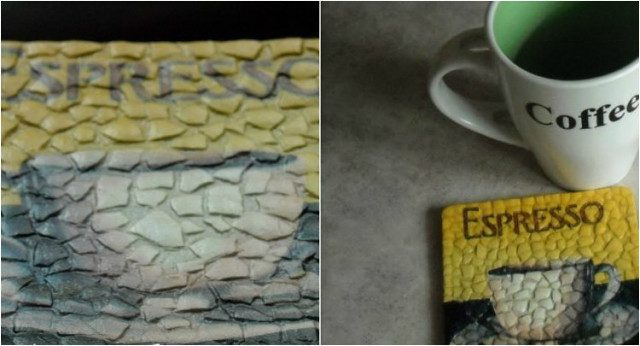 Отличный способ использования яичной скорлупы — оформить с ее помощью подставку под горячее.