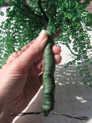 Плакучая ива из бисера изготавливается плетением на проволоке.