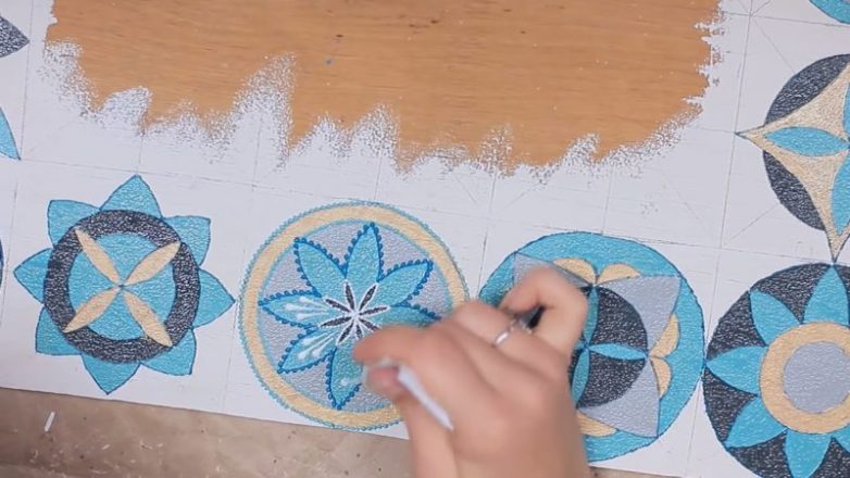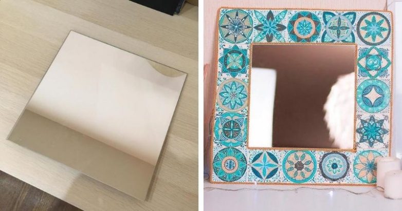 Вот так можно преобразить самое простое и дешевое зеркало! Вы только посмотрите на эту роспись — она так напоминает плитку!