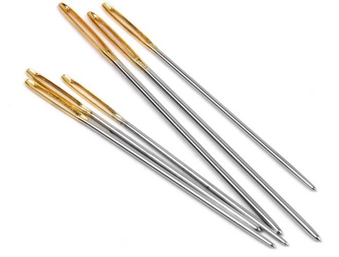 Гобеленовые – иглы с тупым и нередко немного загнутым кончиком, имеющие продолговатое большое ушко. Для лент шириной 7-12 мм лучше использовать №16-18, при ширине 20-30 мм – возьмите №14-16, при ширине 5 см – оптимальный №13.