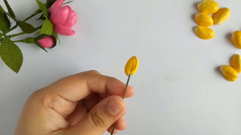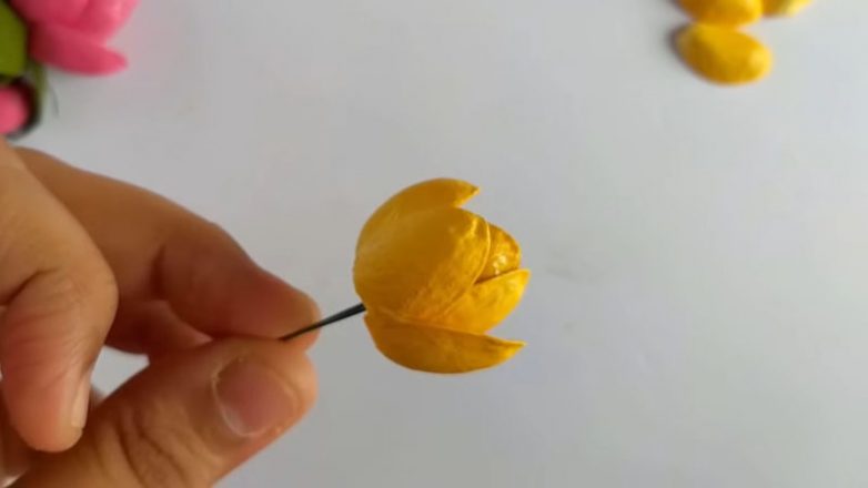 Продолжать приклеивать, пока не получится полураскрытый бутон.