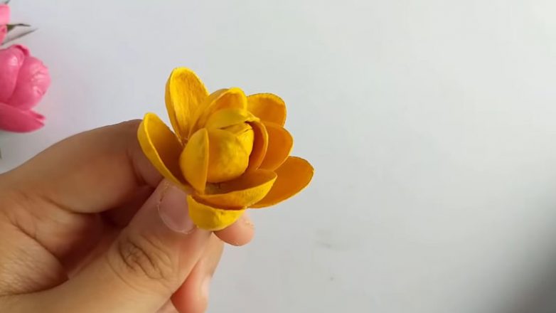 Приклеить следующий ряд скорлупы, имитируя бутон розы.