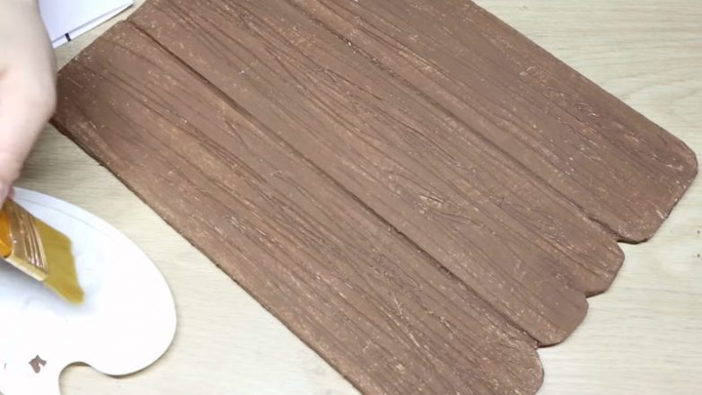 И деревянной шпажкой/зубочисткой сделайте полосы, имитирующие дерево. Оставьте до полного высыхания.