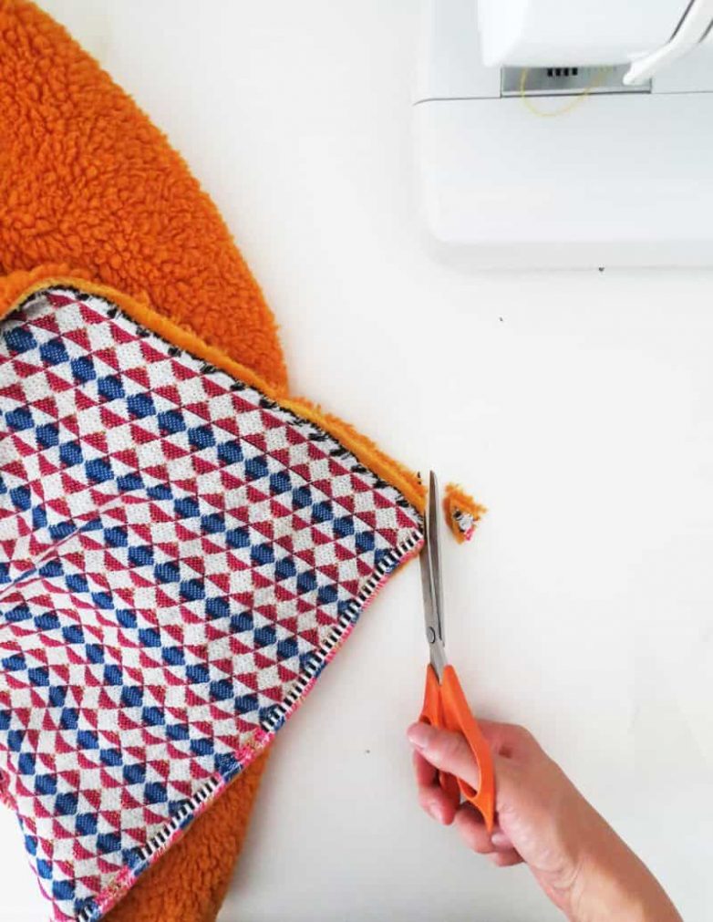 Аккуратно обрежьте углы ткани и выверните одеяло на лицевую сторону.