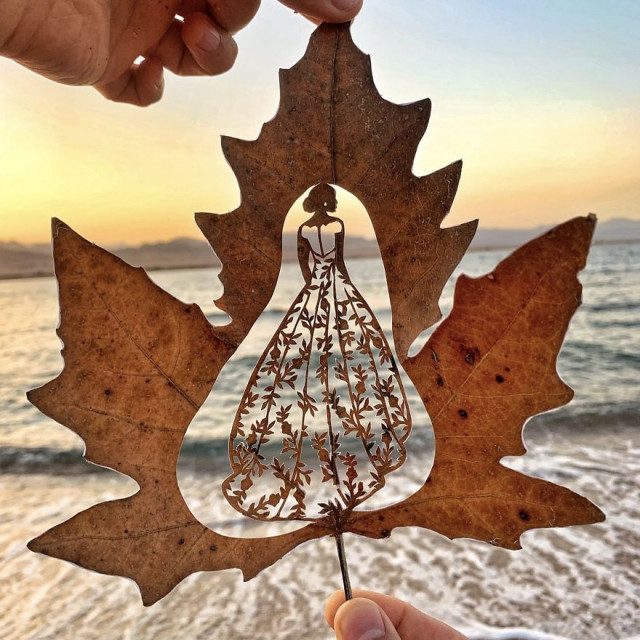 Вырезать из бумаги и листьев он начал в 2013 году в качестве хобби, со временем научившись всему самостоятельно.