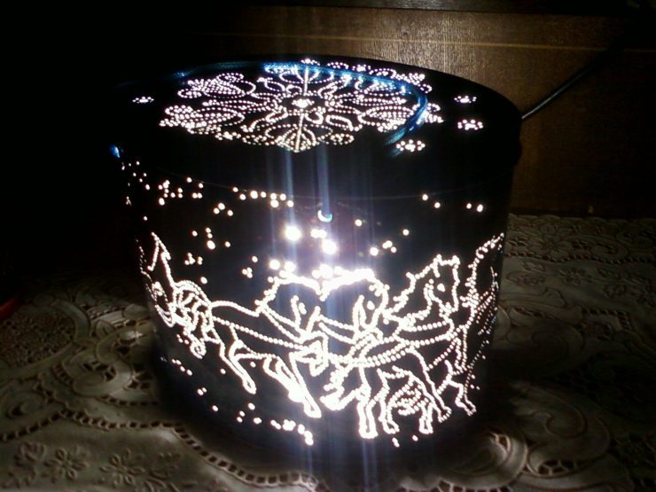 При создании ночника для детской, следует обратить внимание на тот факт, что детям очень нравится рассматривать созвездия Большой и Малой медведицы. Это будет практически беспроигрышный вариант оформления. Если же отверстия в фольге пробивать согласно схеме звездного неба, то можно получить достаточно реалистичное изображение.