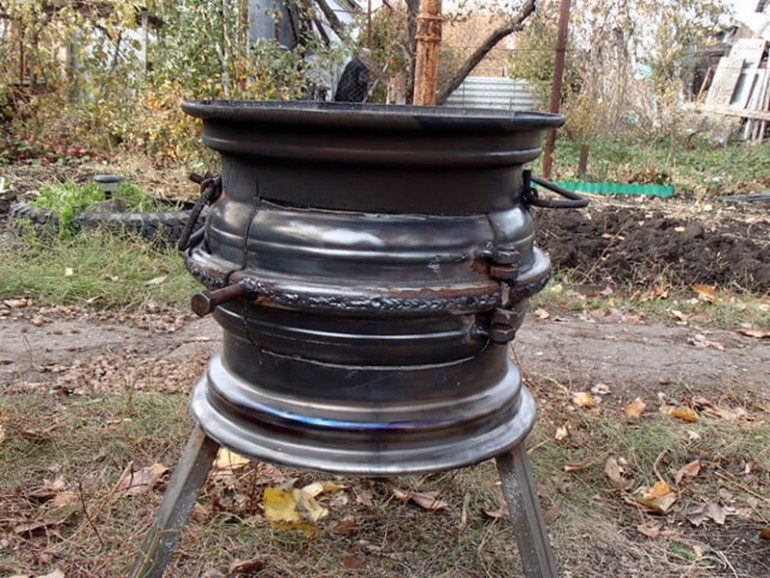 Уличный камин из старых колёсных дисков