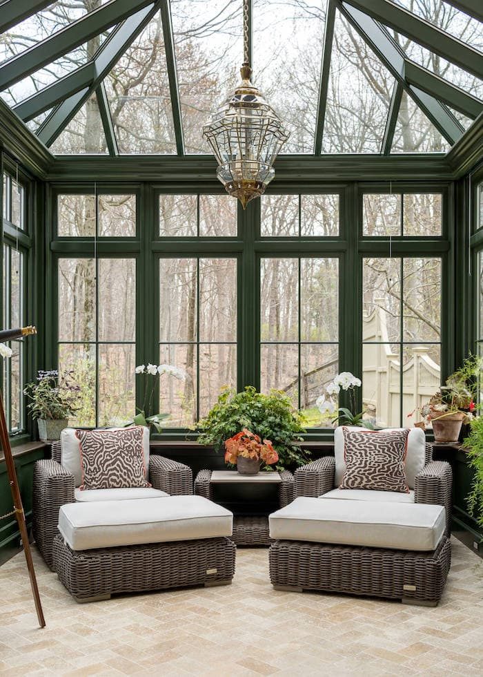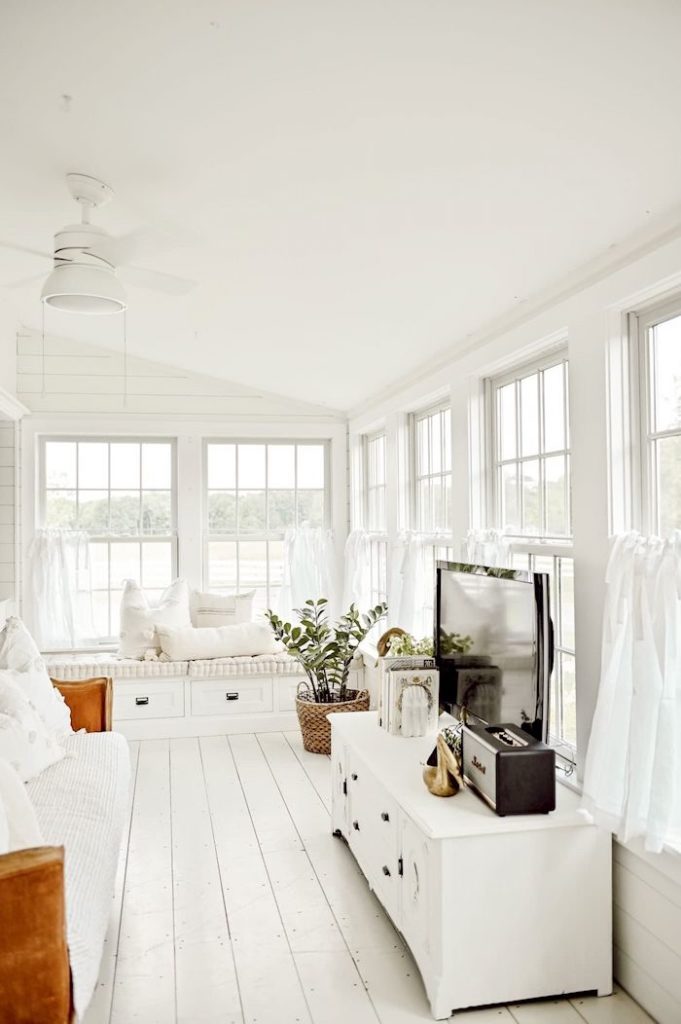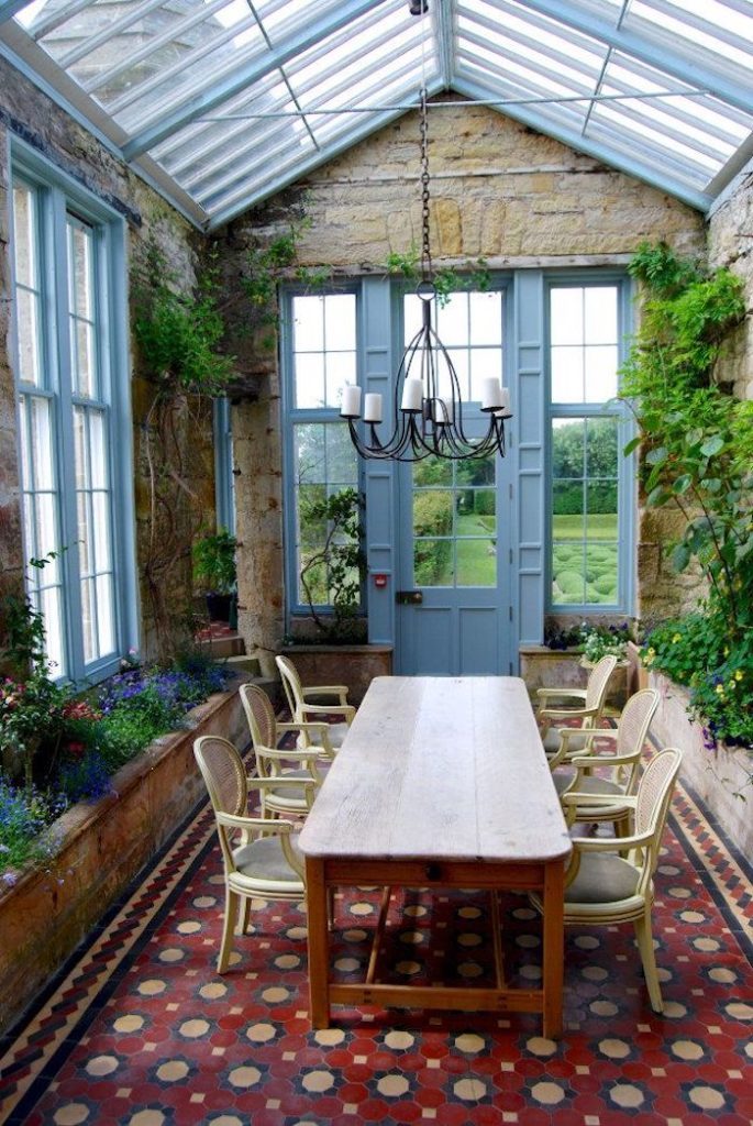 В застекленную террасу смело можно ставить цветы и растения, а лишний свет можно убрать шторами. Посмотрите на несколько удачных идей невесомой застеленной террасы на участке: