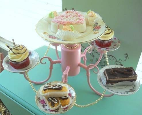 Старая люстра в качестве подставки для сладостей