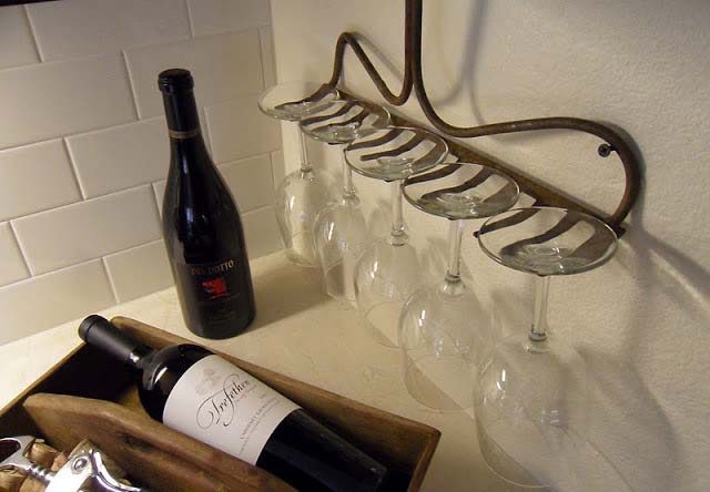 Старые грабли как подставка для бокалов вина