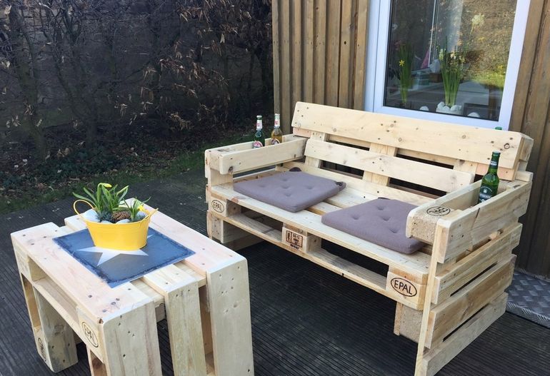 Лавочка для дачи из старых деревянных поддонов