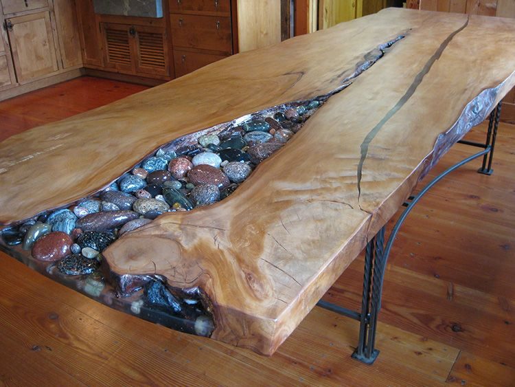 На самом деле, если использовать эпоксидку, то можно создать не только скамейку, но и табуретки, стулья, столы, а также любую мебель. Главное запастись терпением и нужно заиметь форму. Если взять нужную форму из гипса, то можно в нее засыпать обычные опилки и залить останется только смолу, чтобы создать мебель особой формы, вроде форм Гауди.