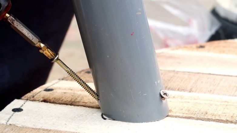 Доски перенесите на покрышку. Присоедините их к ней с помощью саморезов.