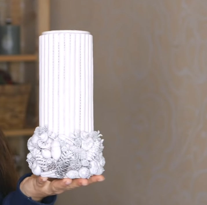 Прохладные осенние вечера — лучшее время для создания милых поделок для дома. Украсить интерьер комнаты можно с помощью оригинальной вазочки, сделанной из высокой пачки от чипсов Pringles, резинового коврика, который обычно используется для пола в ванной, и природных материалов: шишек, веточек, палочек и других мелочей.
