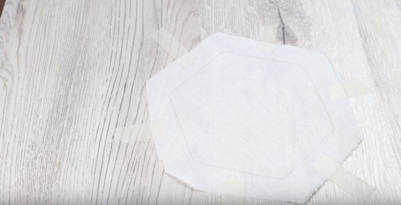 Футболка-трансформерТак же как и в случае с первой футболкой, подготавливаем трафарет из бумаги. Переносим его на плотную ткань и фиксируем на поверхности. В нашем случае получившаяся фигура имеет форму шестиугольника.