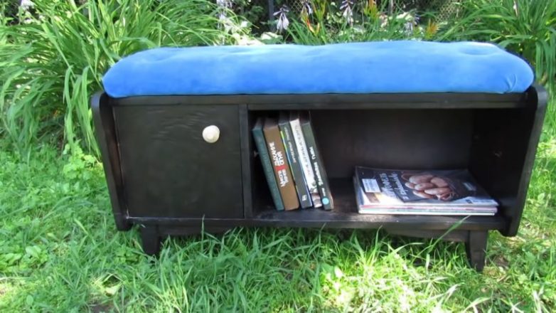 Прикрепить сиденье к тумбе. Такую вещицу можно поставить в прихожей — будет удобно обуваться. Также здесь можно хранить вещи.
