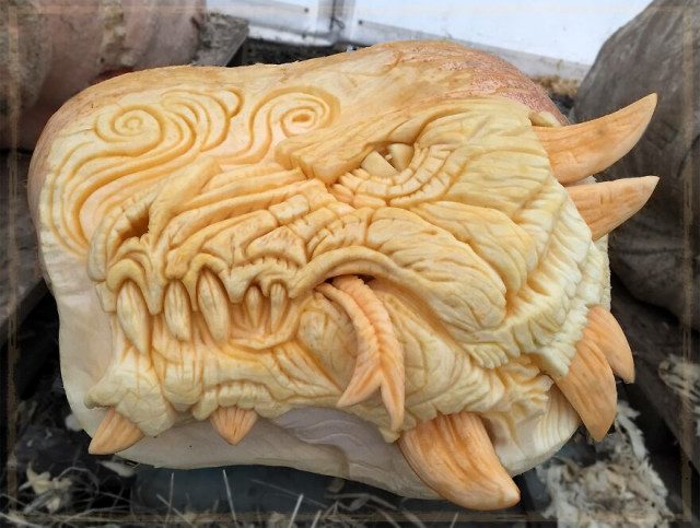 По словам Кристиана, он любит тыквы, любит каждый год вырезать из них интересные и детализированные злые гримасы, любит ужасы и просто с ума сходит по Хэллоуину. Тыкву «Хищник» весом почти тонну он вырезал 2,5 дня, обращая внимание на мельчайшие детали. Предлагаем взглянуть на её и другие его тыквенные творения.