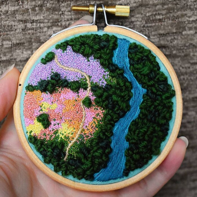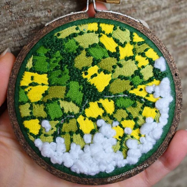 Рукодельница показывает красоту природы с высоты птичьего полёта с помощью вышивки