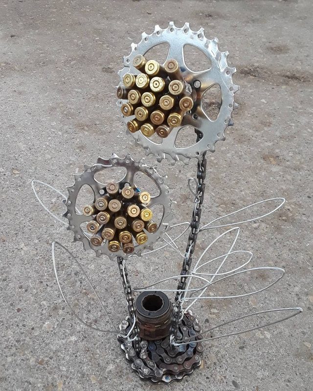 Талантливый механик использует забракованные велосипедные цепи и цепные звёздочки для создания скульптур из металлолома, вдохновлённых природой.