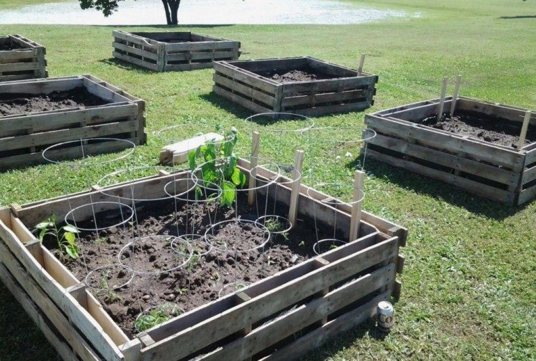 Из деревянных транспортировочных паллет можно сооружать стильные ограждения для цветочных клумб. Паллеты (поддоны) обычно оставляют после доставки стройматериалов. Их можно приобрести отдельно или взять бесплатно в магазинах, где они применяются для доставки товаров.
