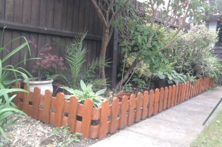Таким образом можно быстро и без особых затрат соорудить красочное ограждение для цветника любых размеров. Забор можно украсить любыми декоративными элементами. При необходимости ограждение легко разбирается и перемещается в другое место.