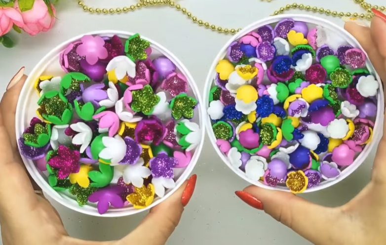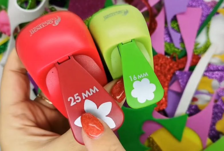 Из фоамирана, используя резаки с декоративными выемками, подготовьте разноцветные детали двух разных размеров и формы.