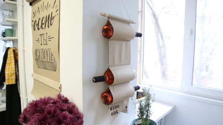 Осталось только подвесить! Отличный подвесной держатель для вина на кухню готов.
