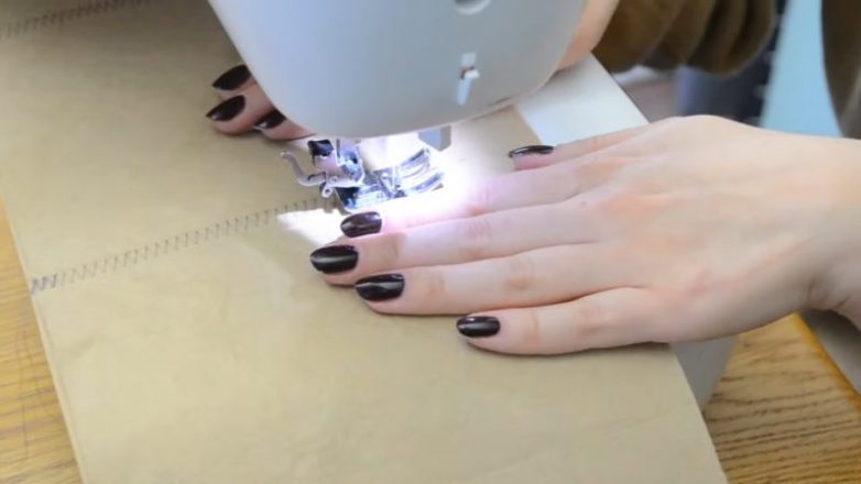 Теперь прошивайте два фетра вместе зигзагом, отступая равное количество (13 см), пока не дойдете до конца.