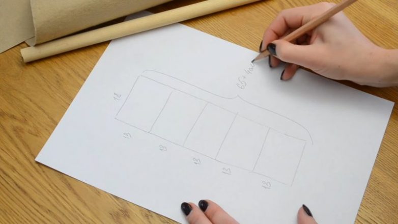 Следующая идея — держатель для винных бутылок — это отличный и практичный декор на кухне! Сначала нарисуем шаблон, который затем перенесем на фетр. Вырежьте две полосы из фетра 18*70 см.