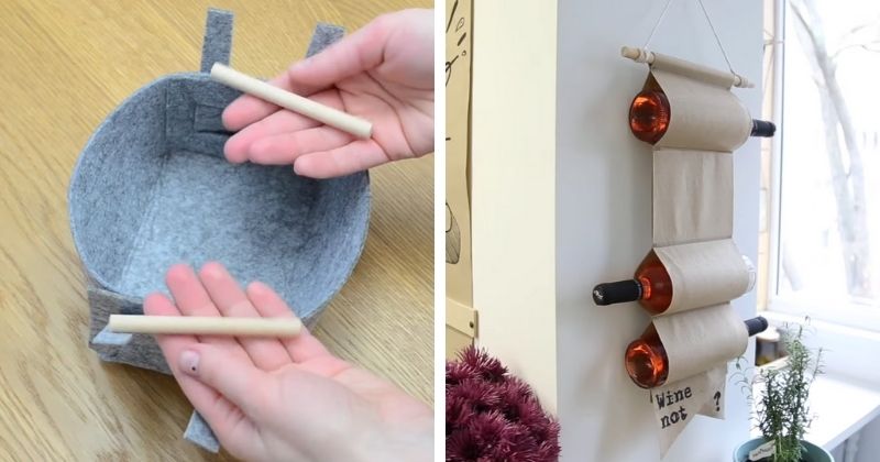 Эти идеи действительно хочется повторить — такие простые, но очень привлекательные! Посмотрите, как из обычного фетра можно сделать необычные и полезные вещи для дома, такие как простая корзинка для хранения и подвесной держатель для вина, например.