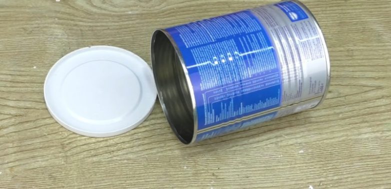 Банку покрасьте белой акриловой краской, чтобы скрыть все рисунки и надписи, которые на ней есть.