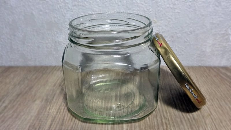 Удалите этикетки. Сделайте отверстие ножом в крышке.