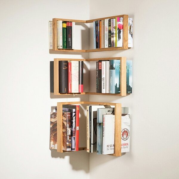Не забывайте об угловых полках, ведь это настоящее спасение для ограниченного пространства