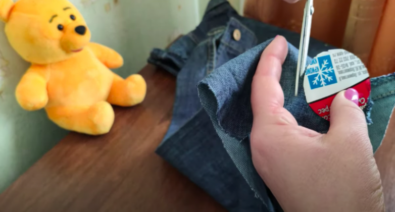 Ну, и зачем этот идиотизм? Из таких клевых джинсов можно изготовить вещи, более красивые и функциональные. А эту довольно-таки приличную еще игрушку почистить, постирать и отдать какому-нибудь нуждающемуся в ней ребенку.