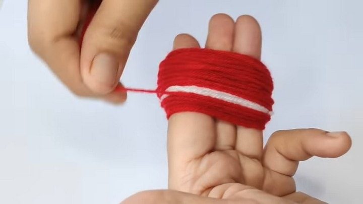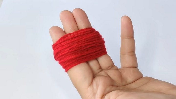 На три пальца намотайте пряжу красного цвета. Нить обрежьте.