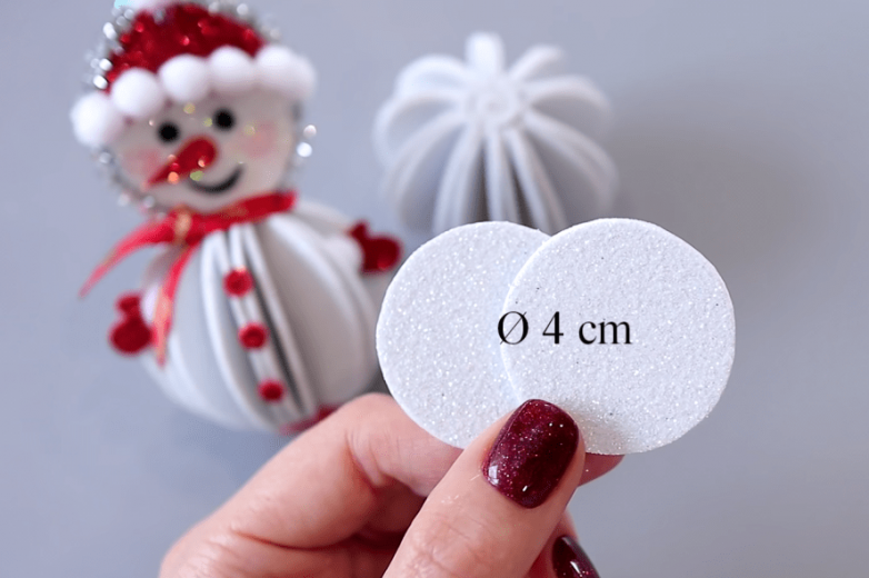 В результате получаем нижний «снежный ком». Чтобы закрыть образовавшееся отверстие, отрезаем небольшую полоску фоамирана, скручиваем ее улиткой и помещаем внутрь.