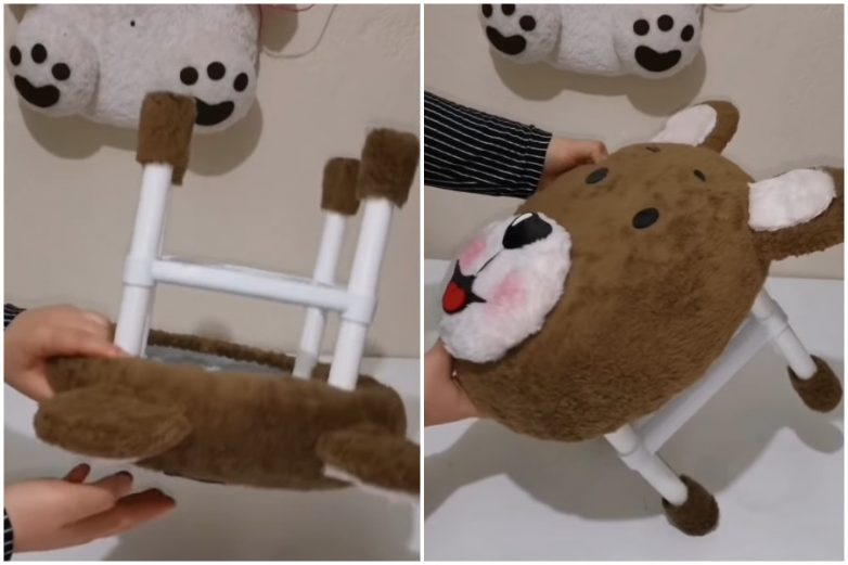 Обычный пластиковый табурет при желании можно превратить в дизайнерский. Обновка отлично подойдет для детской комнаты. Мягкий стульчик, не утратив функциональности, внешне стал похож на харизматичного медвежонка. И все это без особых усилий, буквально из того, что оказалось под рукой.