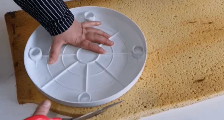 Приклеиваем поролон к пластиковому основанию. При необходимости подравниваем.